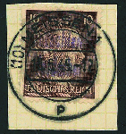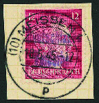 | Zusatzinformationen und Suchstichworte: | Gert Müller 116. Auktion 24. - 26. November 2022 Los 2714 Deutsche Lokalausgabe Meissen 10 Pfg. und 12. Pfg. Hitler im Stichtiefdruck, beide Werte mit Handstempel-Aufdruck "DEUTSCHLANDS VERDERBER", farbfrisch und sehr gut gezähnt auf traumhaft schönen Briefstücken ideal zentrisch gerade und klar gest. "MEISSEN 18.5.45.". Fast alle im Handel bzw. in Sammlungen befindliche Exemplare hiervon sind Fälschungen. Echte Stücke sind nur in wenigen Exemplaren bekannt, wobei es sich hier um den schönsten uns bekannten Briefstücksatz handelt. Eine Luxusgarnitur dieser weit unterschätzen Ausgabe für höchste Ansprüche! Fotoattest Dr. Penning BPP. Ausruf 1.000,00 EUR |