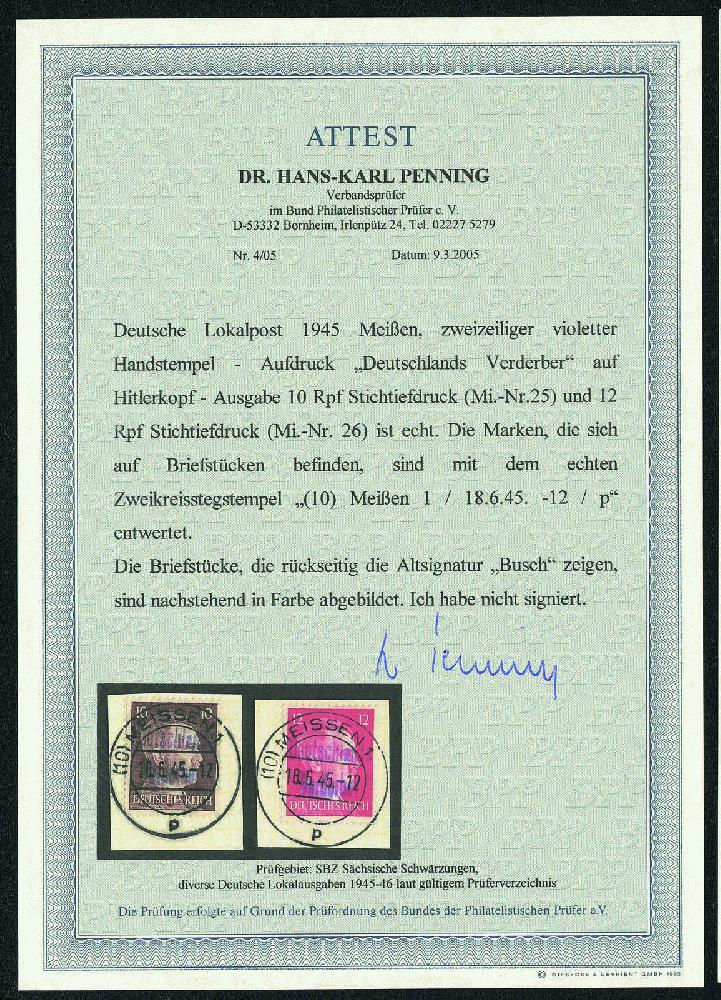 | Prüfgebiet: | Deutsche Lokalausgaben 1945 Meißen |