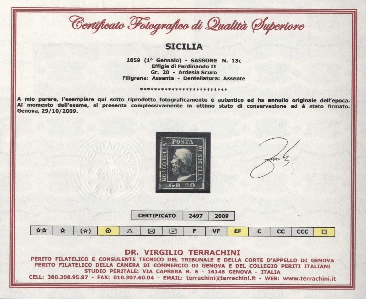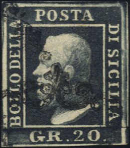 | Zusatzinformationen und Suchstichworte: | 201. Auktionshaus Schulz Auktion 5. - 8. Dezember 2022 Los 5168 Italien Staaten Sizilien 20 Gr. dunkelgrauschiefer, breitrandig, mit sauberen Girlandenstempel, FFA Terrachini Ausruf 120,00 EUR |
