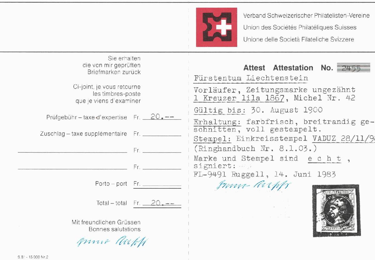 | Prüfer: | Rupp, Bruno (SBPV / ASEP (Schweizerischer Briefmarken-Prüfer-Verband)) |