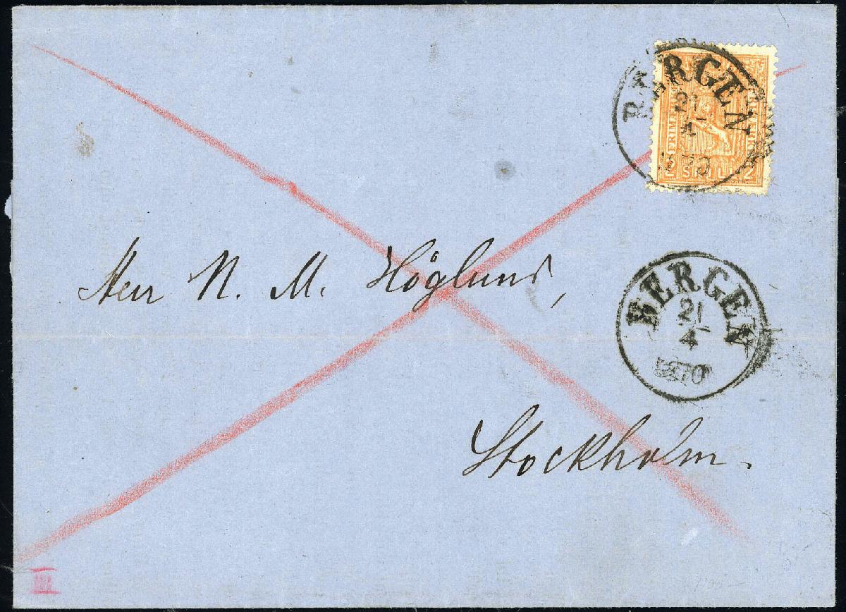 | Zusatzinformationen und Suchstichworte: | Skanfil Auktion - Herbst Auktion 2022 9. - 12. November 2022 Los 3722 Norwegen Wappen 1867 12. Enkeltmerke stemplet "Bergen 21.4.1870" på meget pen komplett trykksak sendt til Stockholm, Sverige. Attest F.C.M Zuschlag 900,00 NOK |