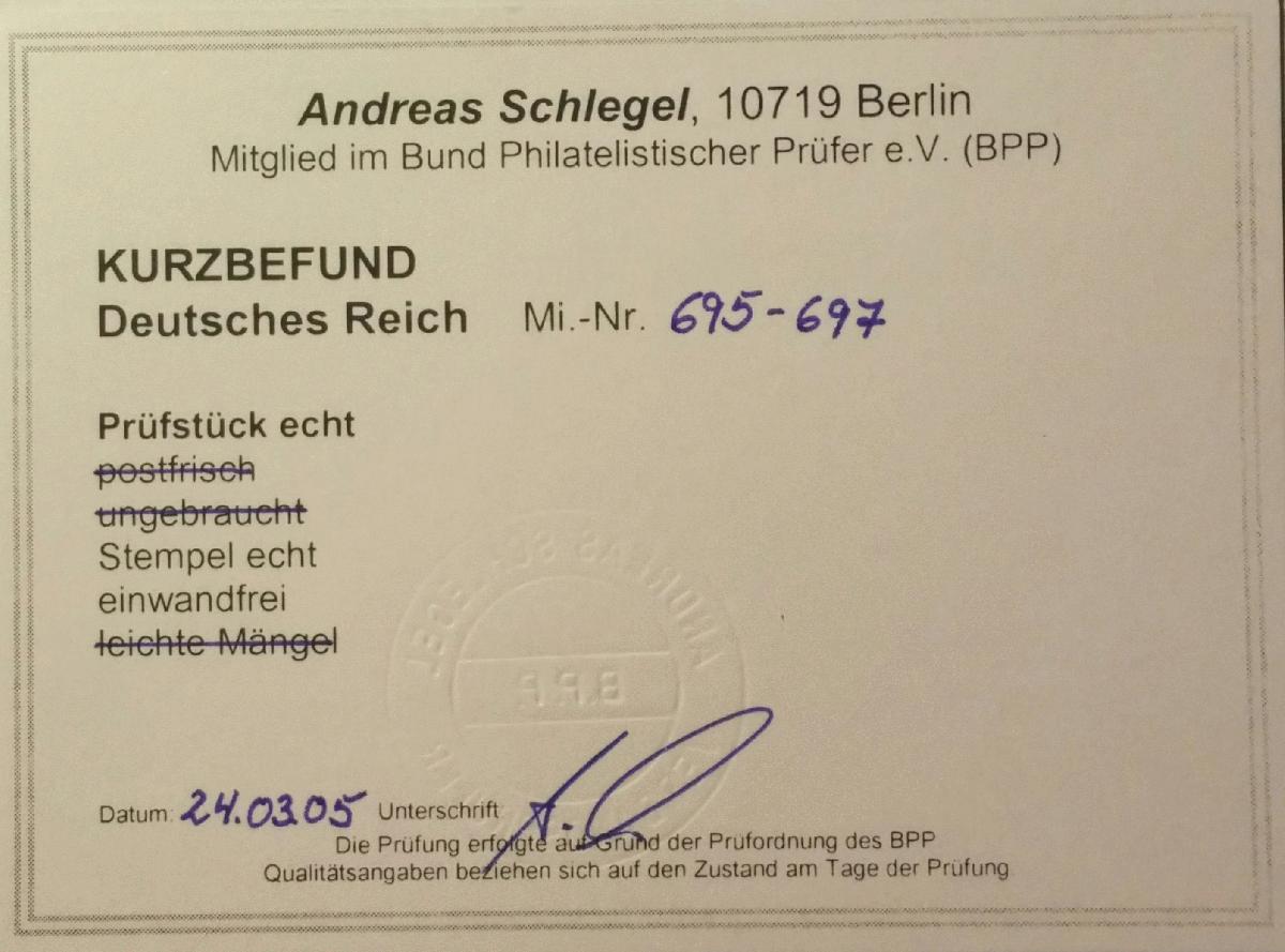 | Prüfer: | Schlegel, Andreas (BPP (Bund Philatelistischer Prüfer)) |