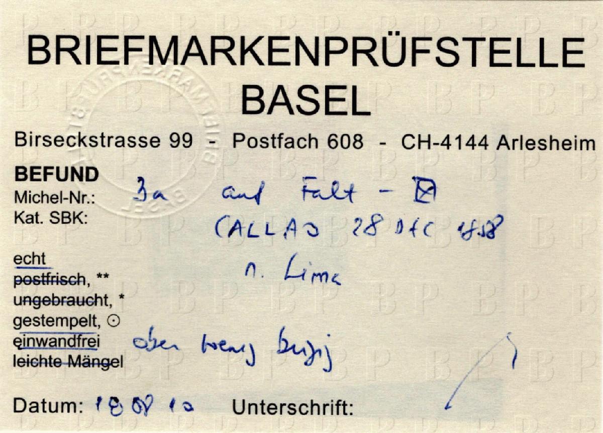 | Prüfer: | Eichele, Martin (BPB (Briefmarkenprüfstelle Basel)) |