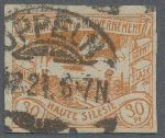 | Zusatzinformationen und Suchstichworte: | Christoph Gärtner 54. Auktion 18. - 19. Oktober 2022 Los 5272 D Oberschlesien 1920, UNGEZÄHNTE UNIKATE, 22 verschiedene, sowie ein weiteres Exemplar, zu dem nur 2 weitere bekannt sind. Eine einzigartige Garnitur der größten Raritäten und ein Spitzen-Ensemble der zahlreichen Facetten Oberschlesiens. Im einzelnen handelt es sich um die Michelnummern1-2, 7-8, 13 - 27, 29 und 41 - 43 U, alle zeitgerecht entwertet und bis auf MiNr 22, 41-43 tadellos erhalten, jeweils mit einem Fotoattest Gruber BPP Ausruf 15.000,00 EUR |