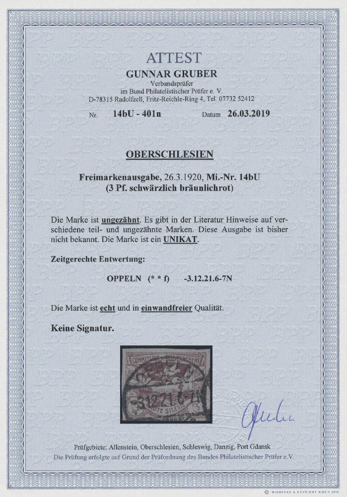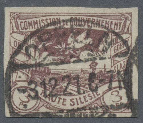 | Zusatzinformationen und Suchstichworte: | Christoph Gärtner 54. Auktion 18. - 19. Oktober 2022 Los 5272 D Oberschlesien 1920, UNGEZÄHNTE UNIKATE, 22 verschiedene, sowie ein weiteres Exemplar, zu dem nur 2 weitere bekannt sind. Eine einzigartige Garnitur der größten Raritäten und ein Spitzen-Ensemble der zahlreichen Facetten Oberschlesiens. Im einzelnen handelt es sich um die Michelnummern1-2, 7-8, 13 - 27, 29 und 41 - 43 U, alle zeitgerecht entwertet und bis auf MiNr 22, 41-43 tadellos erhalten, jeweils mit einem Fotoattest Gruber BPP Ausruf 15.000,00 EUR |