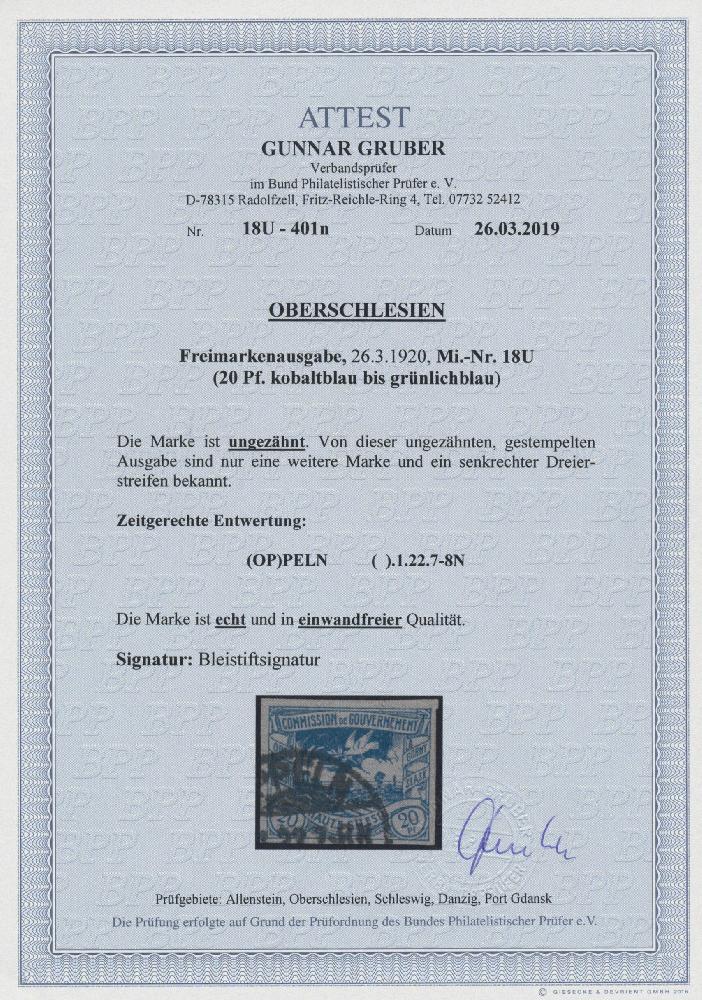| Zusatzinformationen und Suchstichworte: | Christoph Gärtner 54. Auktion 18. - 19. Oktober 2022 Los 5272 D Oberschlesien 1920, UNGEZÄHNTE UNIKATE, 22 verschiedene, sowie ein weiteres Exemplar, zu dem nur 2 weitere bekannt sind. Eine einzigartige Garnitur der größten Raritäten und ein Spitzen-Ensemble der zahlreichen Facetten Oberschlesiens. Im einzelnen handelt es sich um die Michelnummern1-2, 7-8, 13 - 27, 29 und 41 - 43 U, alle zeitgerecht entwertet und bis auf MiNr 22, 41-43 tadellos erhalten, jeweils mit einem Fotoattest Gruber BPP Ausruf 15.000,00 EUR |