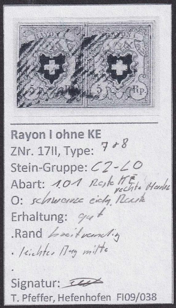 | Zusatzinformationen und Suchstichworte: | Luzernerraute Webshop Los 0000306116 Rayon I, hellblau, ohne KE (STEIN C2) T.7+8 C2-LO. breitrandig mit rechtem Gruppen-Abstand, minim bügige Einheit jedoch sehr gut präsentierend, mit Kleinbefund Pfeffer. KE-Einfassungs-Spuren. Festpreis 180,00 CHF |