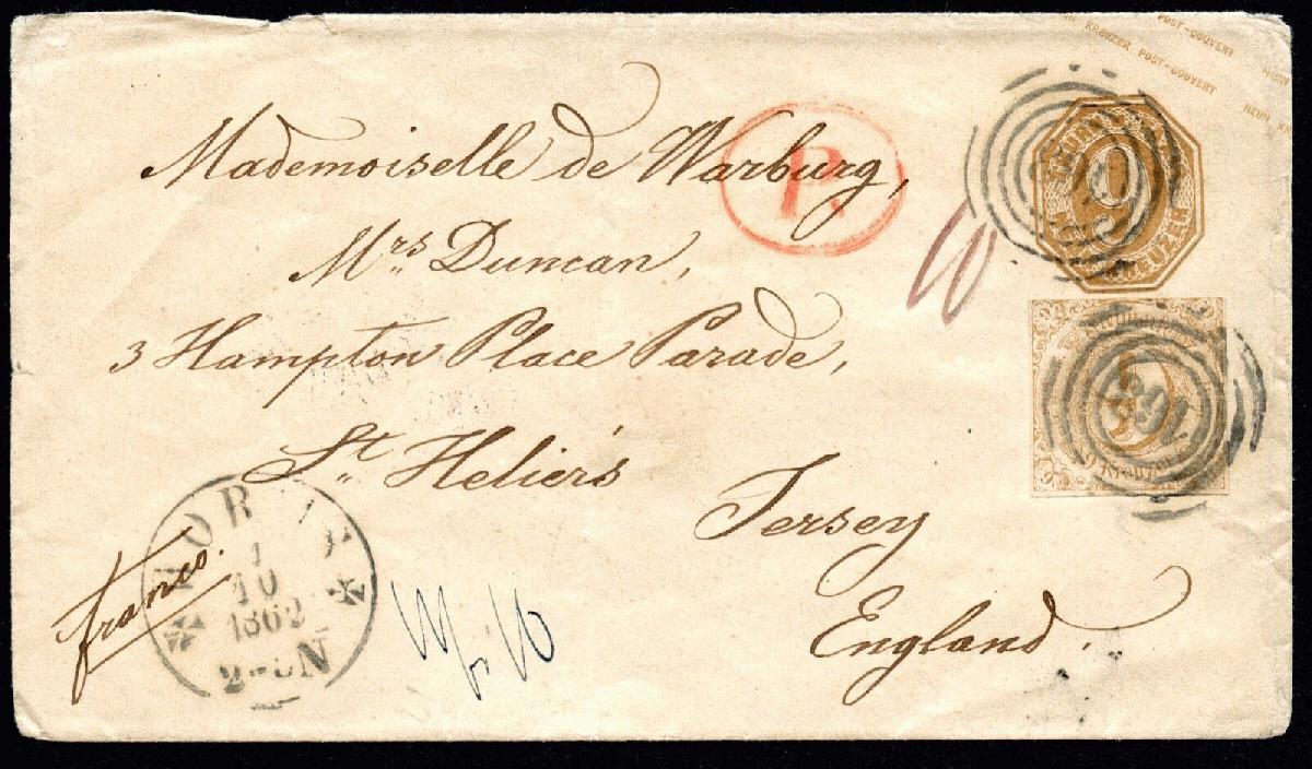 | Zusatzinformationen und Suchstichworte: | ebay.de eBay-Artikelnr.:155299281461 Thurn und Taxis Brief nach JERSEY (Kronbesitz) Altdeutschlandrarität Gärtner BPP Preis 3.700,00 EUR |