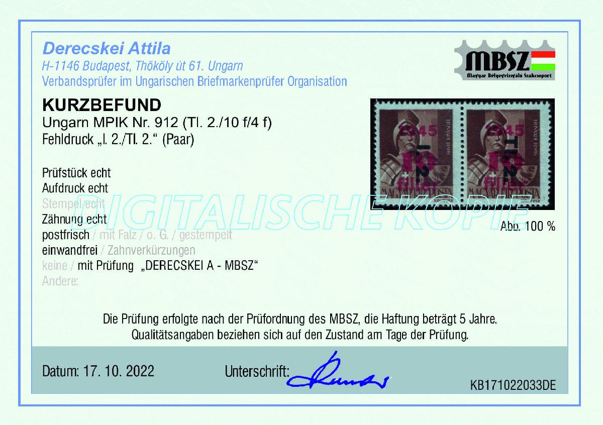 | Zusatzinformationen und Suchstichworte: | Ungarn MPIK Nr. 912 Fehldruck |