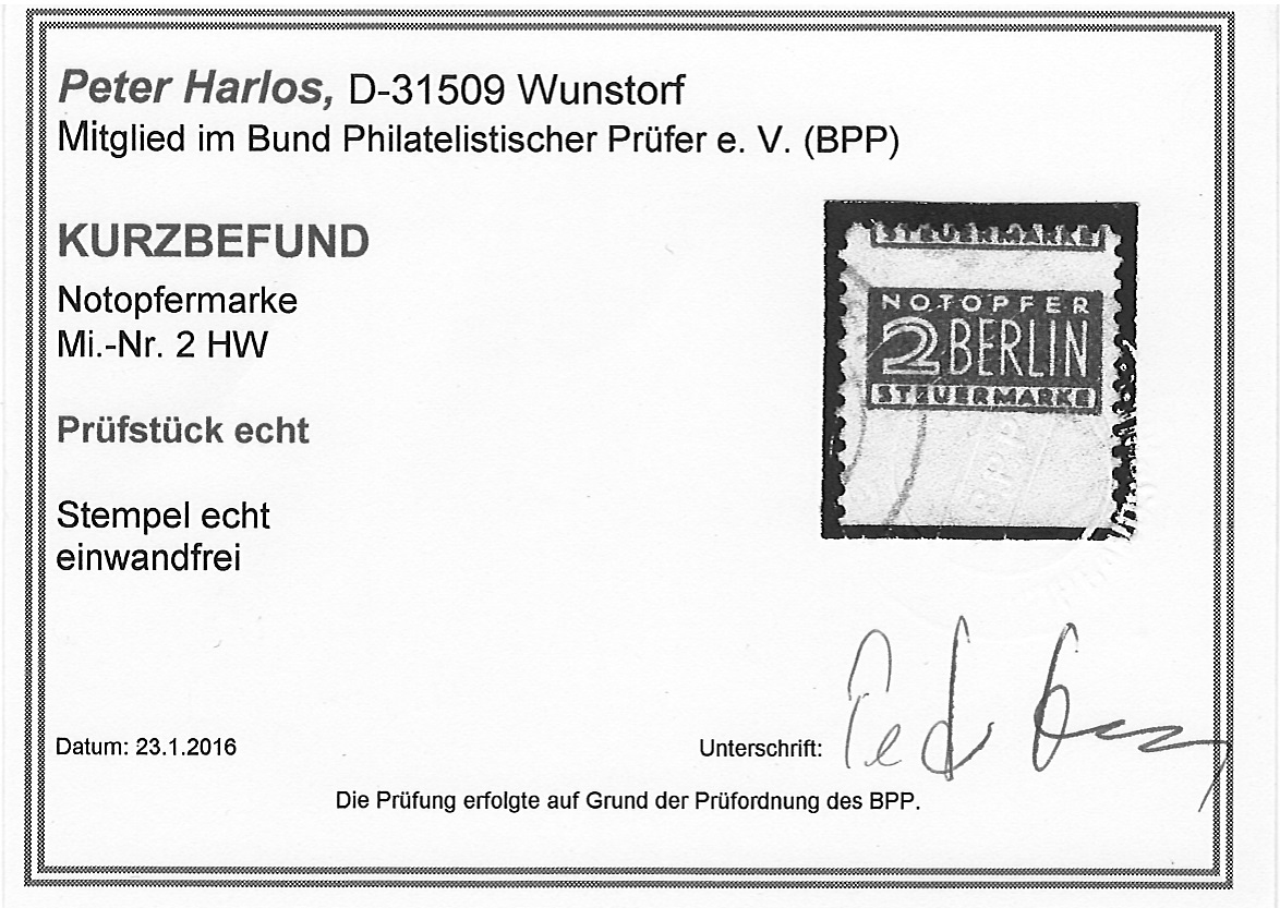 | Zusatzinformationen und Suchstichworte: | Notopfer Nr. 2 HW unten ungezähnt |