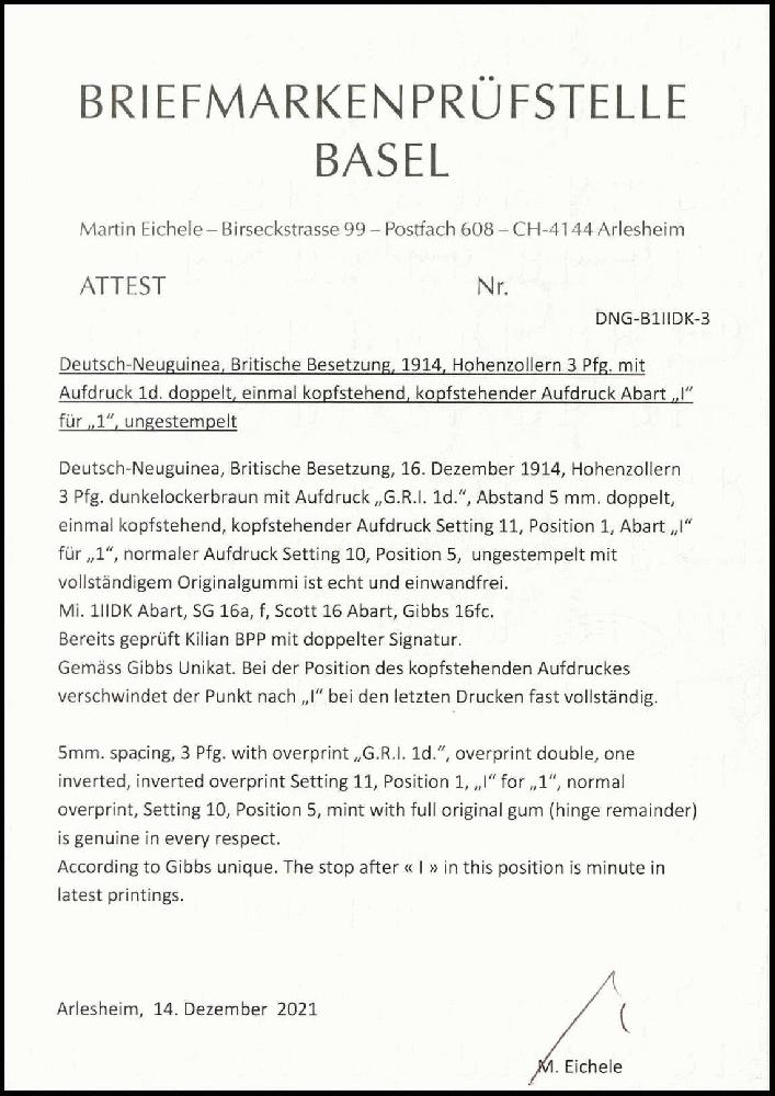 | Prüfgebiet: | Deutsche Kolonien Deutsch-Neuguinea Britische Besetzung |
