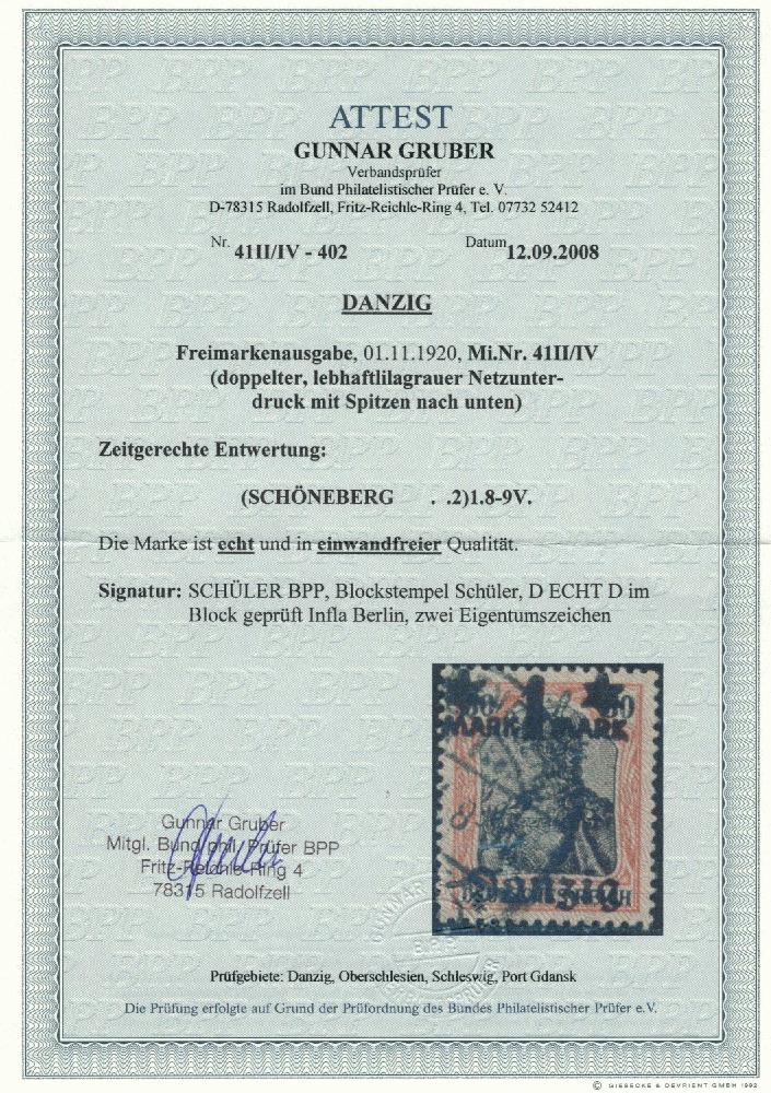 | Prüfer: | Gruber, Gunnar (BPP (Bund Philatelistischer Prüfer)) |