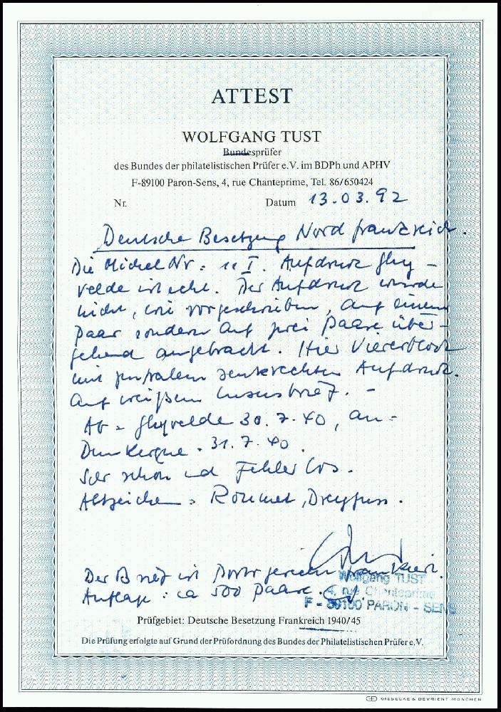 | Prüfgebiet: | Deutsche Besetzung WK 2 Frankreich Dünkirchen |