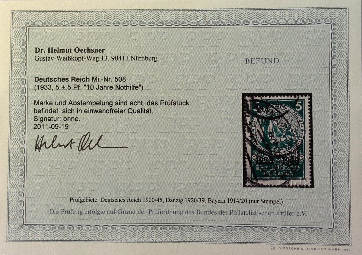 | Prüfer: | Oechsner, Helmut (BPP (Bund Philatelistischer Prüfer)) |
