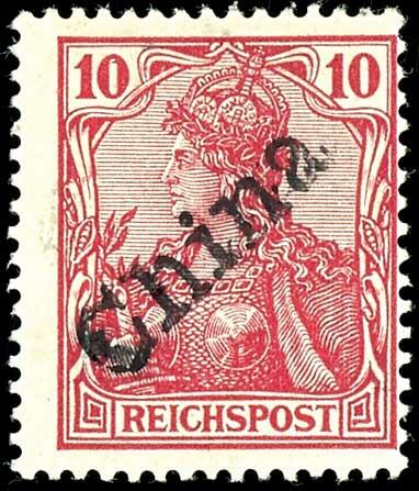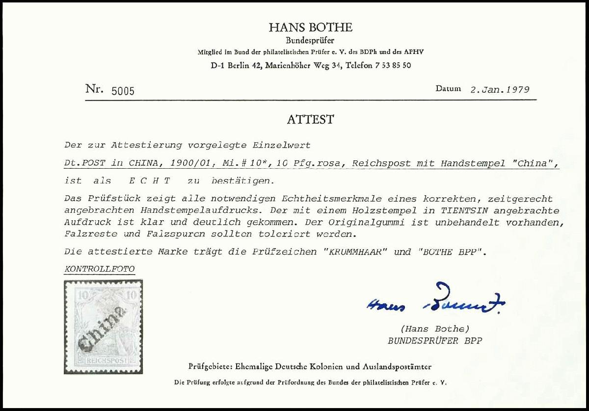 | Zusatzinformationen und Suchstichworte: | Dr. Reinhard Fischer 189. Auktion 24. - 26. November 2022 Los 1892 Deutsche Auslandspost China 10 Pfg. Germania mit Handstempelaufdruck, ungebraucht, geprüft Krummhaar und Bothe BPP mit Fotoattest, Mi. 1200,- Ausruf 350,00 EUR |