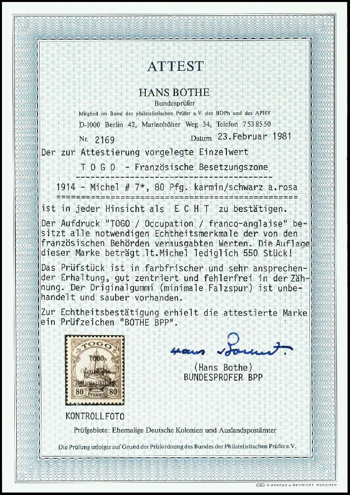 | Prüfgebiet: | Deutsche Kolonien Togo Französische Besetzung |