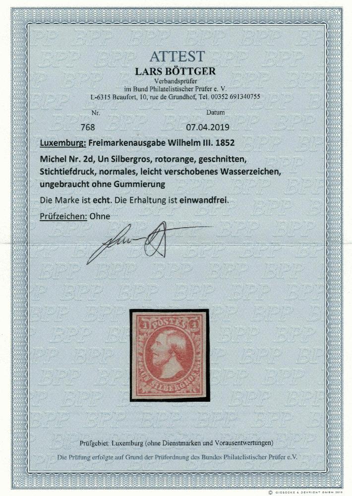 | Prüfer: | Böttger, Lars (BPP (Bund Philatelistischer Prüfer)) |