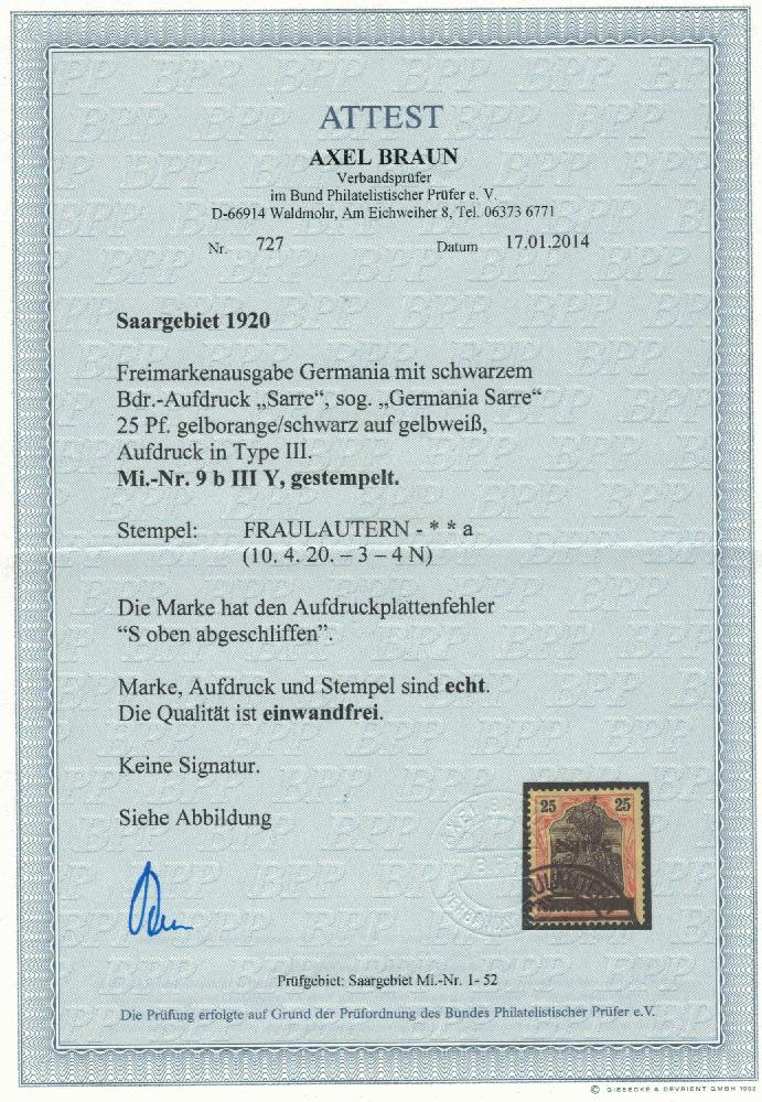 | Prüfer: | Braun, Axel (BPP (Bund Philatelistischer Prüfer)) |
