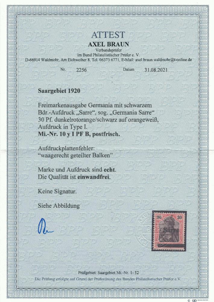 | Prüfer: | Braun, Axel (BPP (Bund Philatelistischer Prüfer)) |