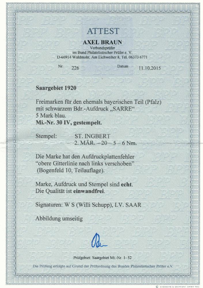 | Prüfer: | Braun, Axel (BPP (Bund Philatelistischer Prüfer)) |
