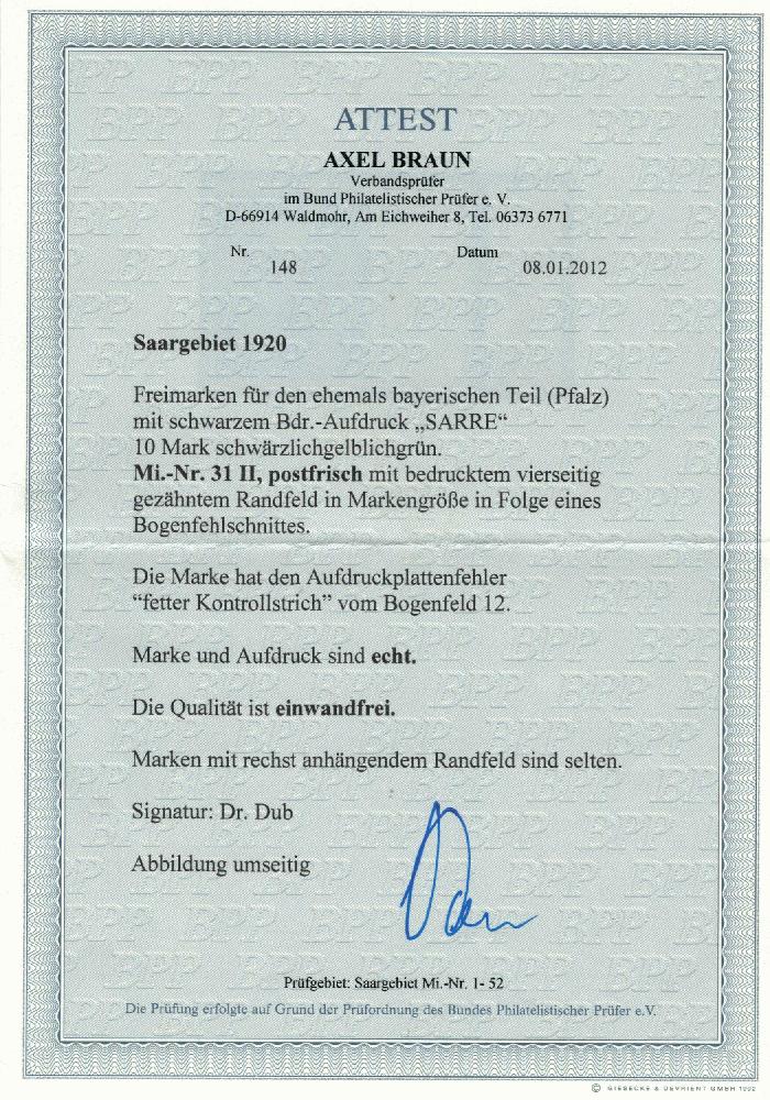 | Prüfer: | Braun, Axel (BPP (Bund Philatelistischer Prüfer)) |