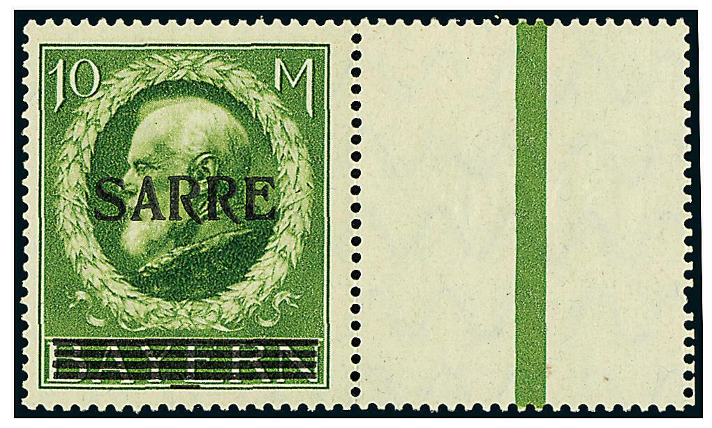 | Zusatzinformationen und Suchstichworte: | Dr. Derichs 7. Online Live Auktion 27. - 28. Dezember 2022 Los 2824 Saar 10 Mk. "Bayern-Sarre", Abart "fetter Kontrollstrich" (Bogenfeld 12), rechts mit anhängendem Leerfeld, postfrisch in Luxus-Qualität. Fotoattest Braun BPP: "Die Qualität ist einwandfrei. Marken mit rechts anhängendem Randfeld sind selten.". (Michel 1.000.- plus 20% für das Leerfeld = 1.200.-) Ausruf 180,00 EUR |