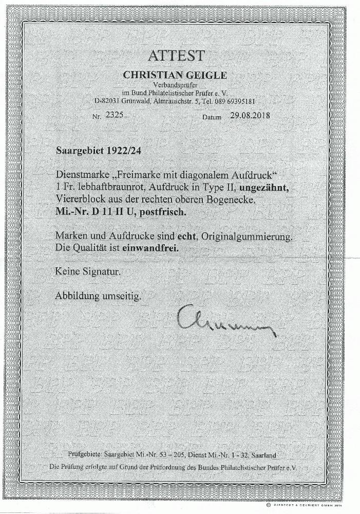 | Prüfgebiet: | Saargebiet (Mi-Nr. 1 - 205) |
