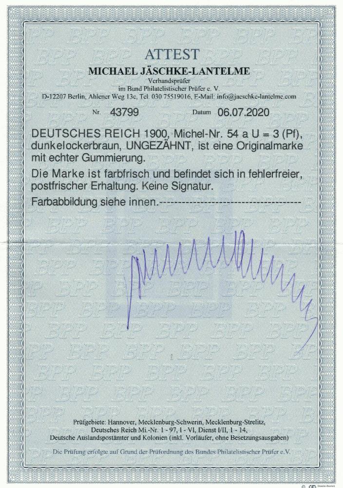| Prüfer: | Jäschke-Lantelme, Michael (BPP (Bund Philatelistischer Prüfer)) |