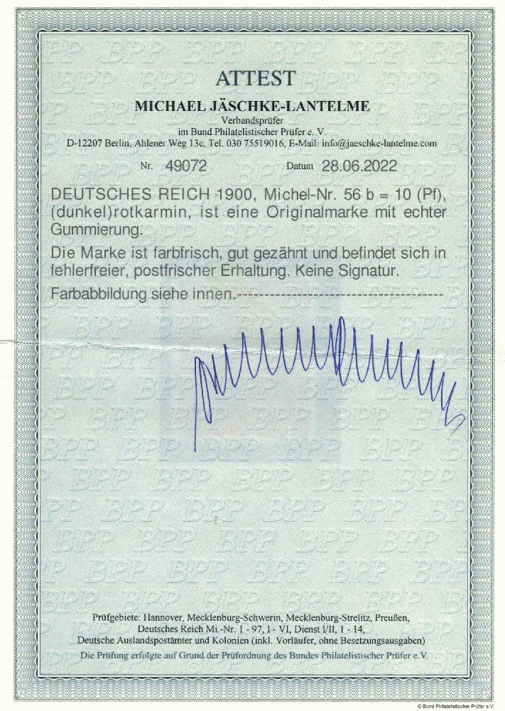 | Prüfer: | Jäschke-Lantelme, Michael (BPP (Bund Philatelistischer Prüfer)) |