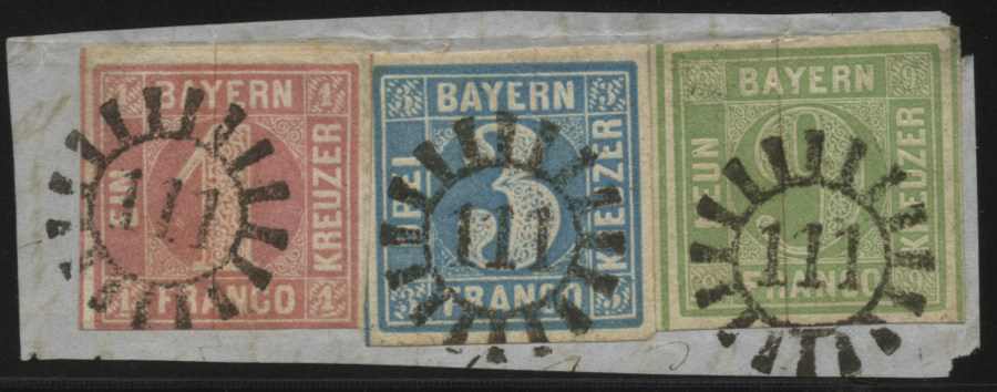 | Zusatzinformationen und Suchstichworte: | 10. Tiergarten Briefmarken und Münzen Auktion 16. Dezember 2022 Los 11 Altdeutschland Bayern Briefstück mit 2 II2, 3 Ia, 5 aIII drei saubere Stempel " 111 " Göllheim, Kurzbefund Sem BPP und Briefstück mit 22Xb, 23X, 24X geprüft Brettl BPP Zuschlag 100,00 EUR |