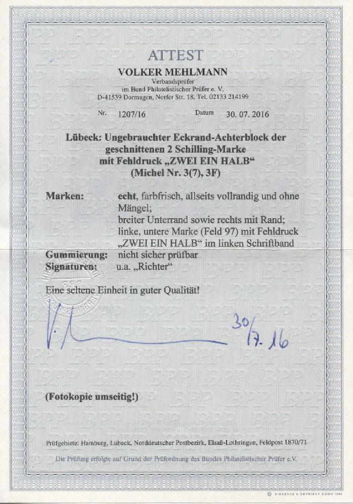 | Prüfer: | Mehlmann, Volker (BPP (Bund Philatelistischer Prüfer)) |