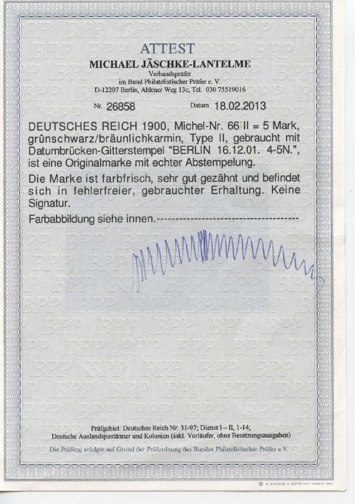 | Prüfer: | Jäschke-Lantelme, Michael (BPP (Bund Philatelistischer Prüfer)) |