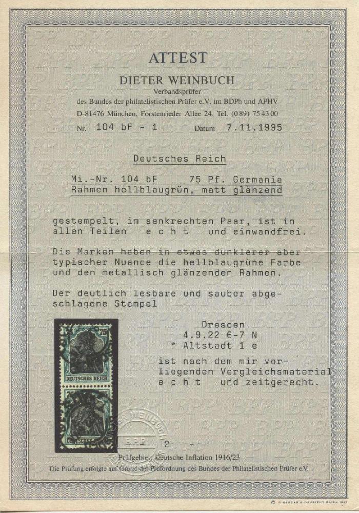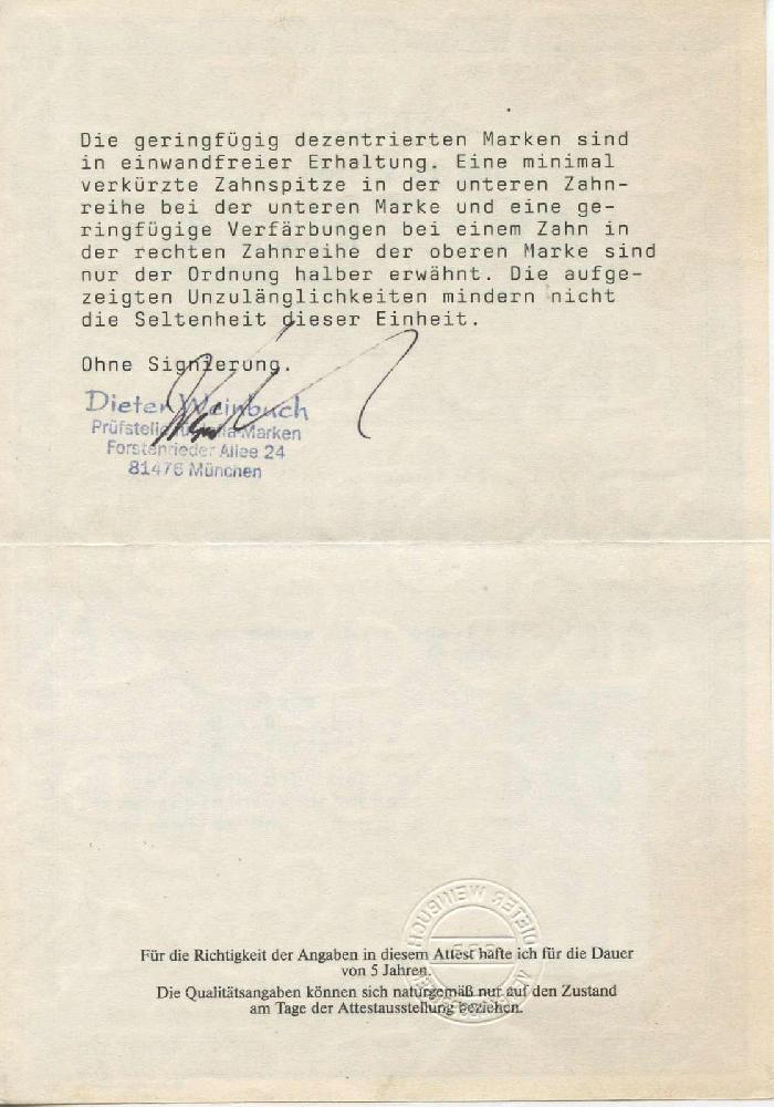 | Prüfer: | Weinbuch, Dieter (BPP (Bund Philatelistischer Prüfer)) |