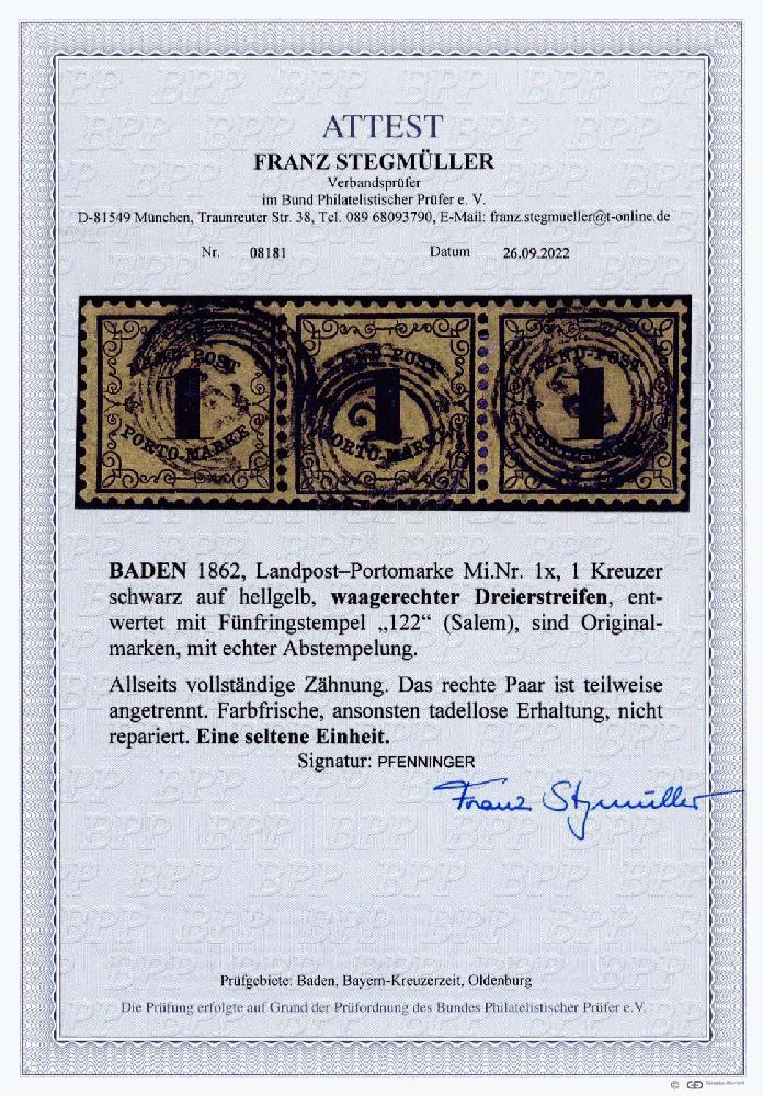 | Prüfgebiet: | Altdeutschland Baden Landpost-Portomarken |