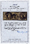 | Zusatzinformationen und Suchstichworte: | 230. Karl Pfankuch & Co Auktion 7. Dezember 2022 Los 45 Altdeutschland Baden Landpost 1 Kr schwarz auf gelb dünnes Papier, waagerechter Dreierstreifen, sauber gest. "122" (Salem), allseits vollständige Zähnung, das rechte Paar ist teilweise angetrennt, farbfrische ansonsten tadellose Erhaltung, sign. Pfenninger und aktuelles Fotoattest Stegmüller. Eine seltene Einheit! M€ 1.500 Zuschlag 240,00 EUR |