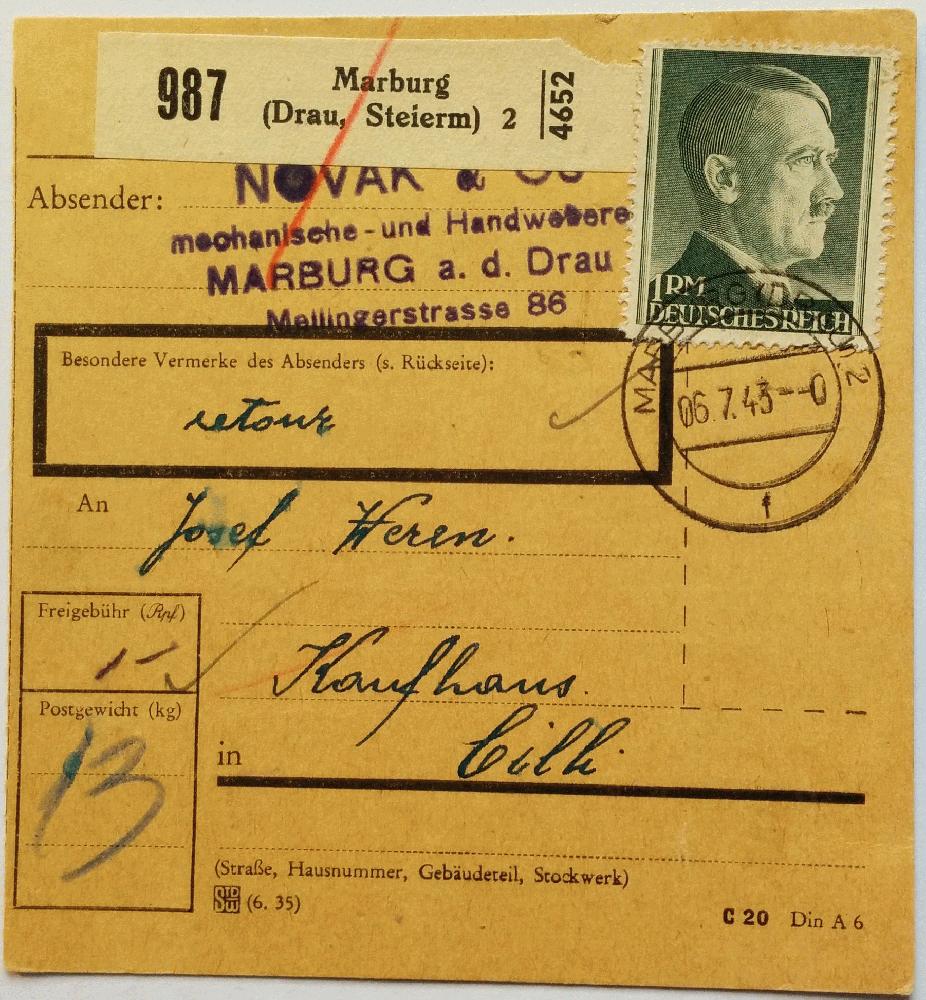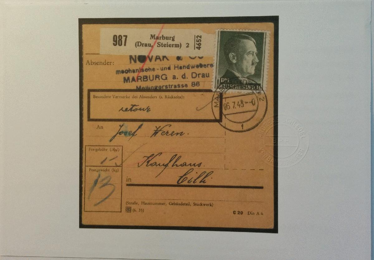 | Zusatzinformationen und Suchstichworte: | Gestempelt, Paketkarte, portogerecht |