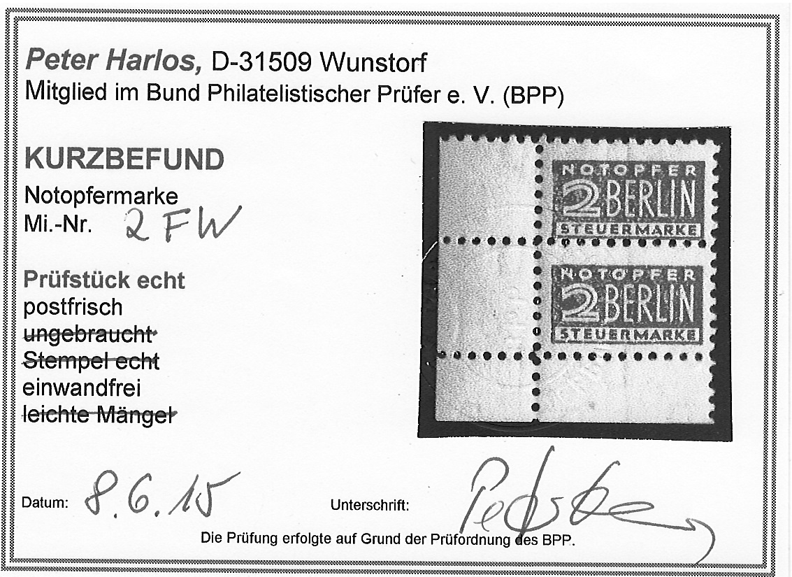 | Zusatzinformationen und Suchstichworte: | Notopfer Nr. 2 FW Bogenecke Doppelstück |