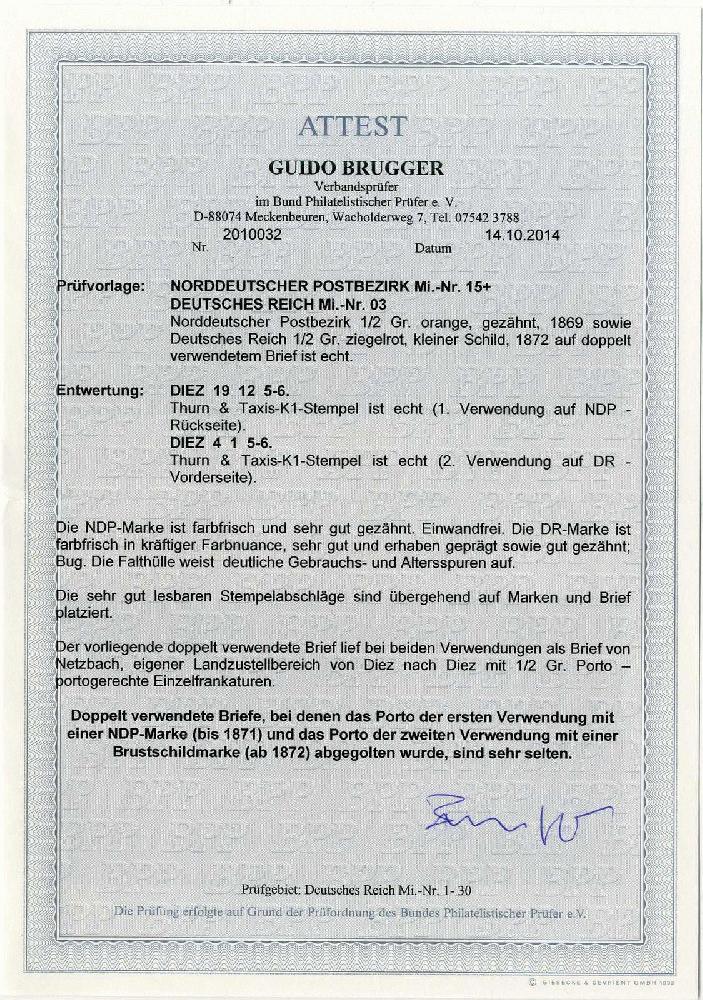 | Prüfer: | Brugger, Guido (BPP (Bund Philatelistischer Prüfer)) |