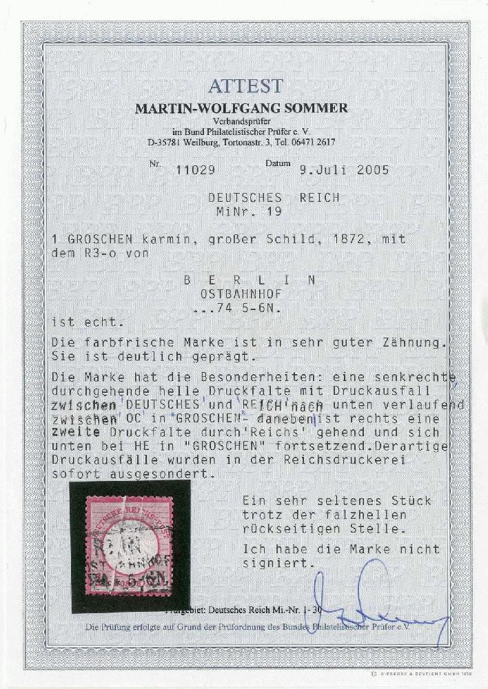 | Prüfer: | Sommer, Martin-Wolfgang (BPP (Bund Philatelistischer Prüfer)) |