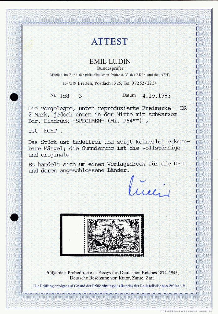 | Prüfgebiet: | Deutsches Reich Specimen, Probedrucke, Essay, Maschinenprobe |