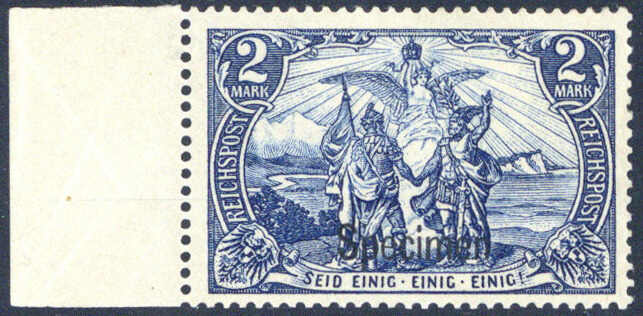| Zusatzinformationen und Suchstichworte: | 230. Karl Pfankuch & Co Auktion 7. Dezember 2022 Los 922 Deutsches Reich, Germania Reichspost 2 Mk. vom li. Bogenrand mit Aufdruck "Specimen", tadellos ungebr., Fotoattest Ludin BPP. M€ 500.- Zuschlag 81,00 EUR |