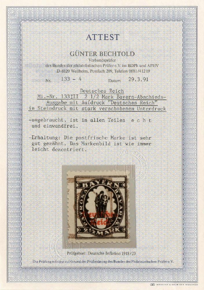 | Prüfgebiet: | Deutsches Reich 1919 - 1923 (Mi-Nr. 107 - 343) |