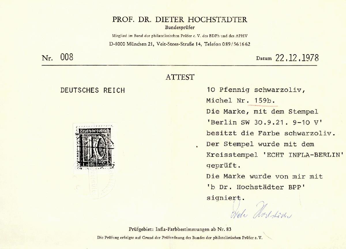| Prüfgebiet: | Deutsches Reich 1919 - 1923 (Mi-Nr. 107 - 343) |