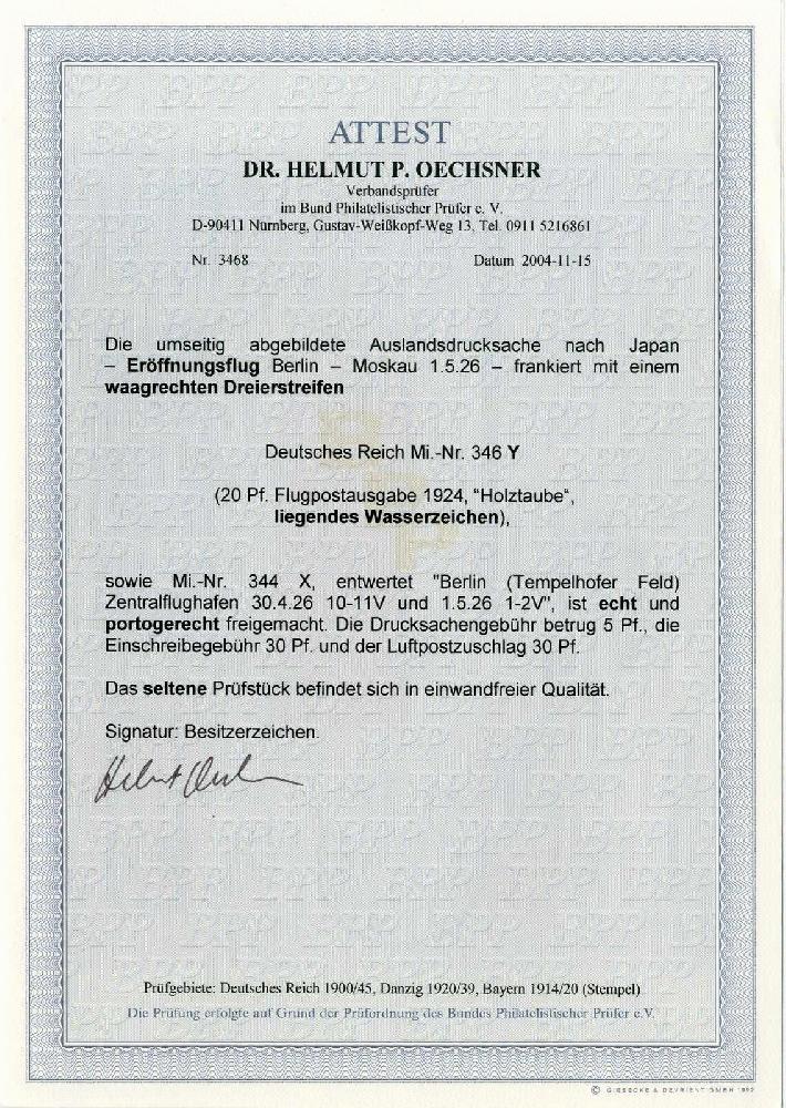 | Prüfer: | Oechsner, Helmut (BPP (Bund Philatelistischer Prüfer)) |