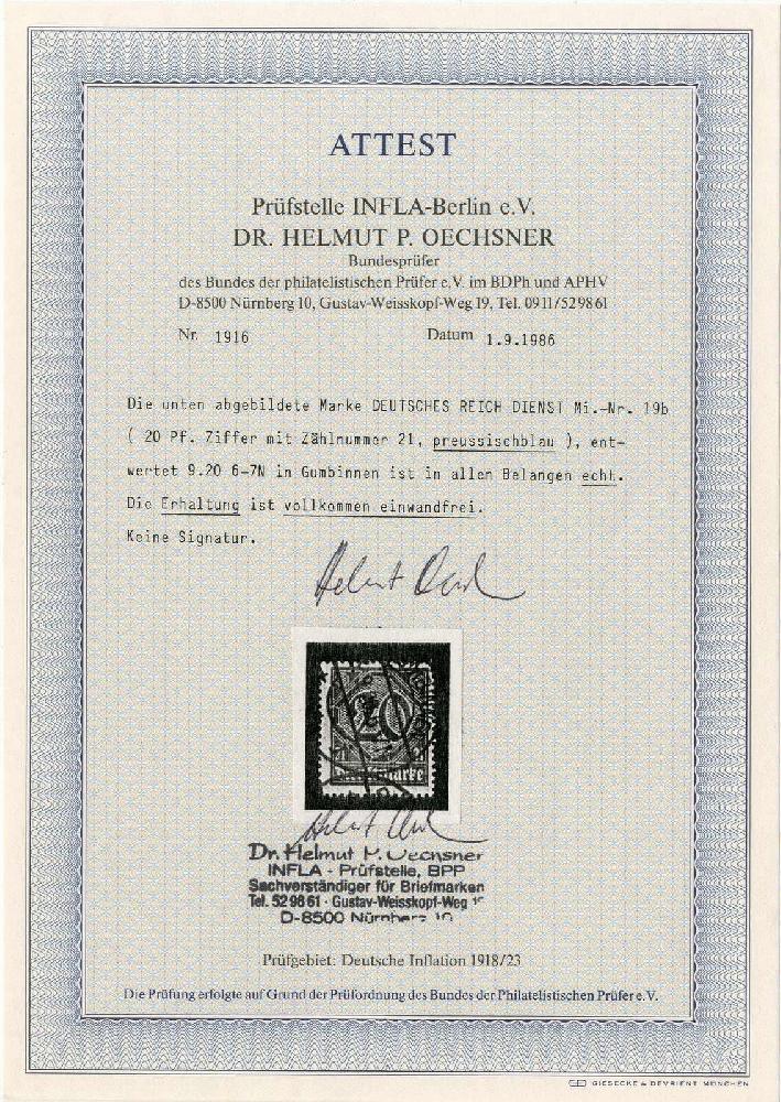 | Prüfer: | Oechsner, Helmut (BPP (Bund Philatelistischer Prüfer)) |