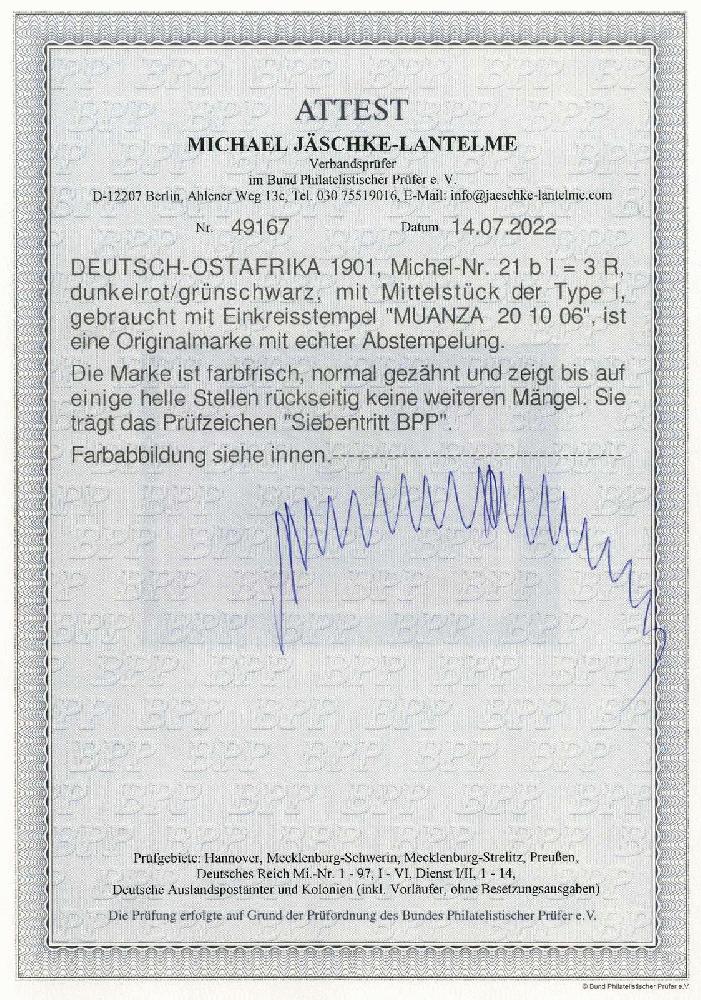 | Prüfer: | Jäschke-Lantelme, Michael (BPP (Bund Philatelistischer Prüfer)) |