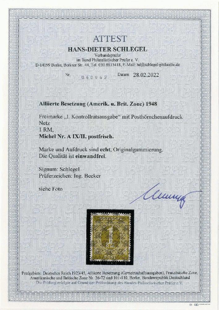 | Prüfgebiet: | Alliierte Besetzung Bizone |