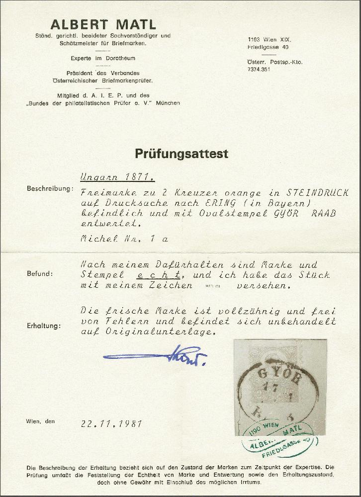 | Prüfer: | Matl, Albert (VÖB (Verband Österreichischer Briefmarkenprüfer)) |