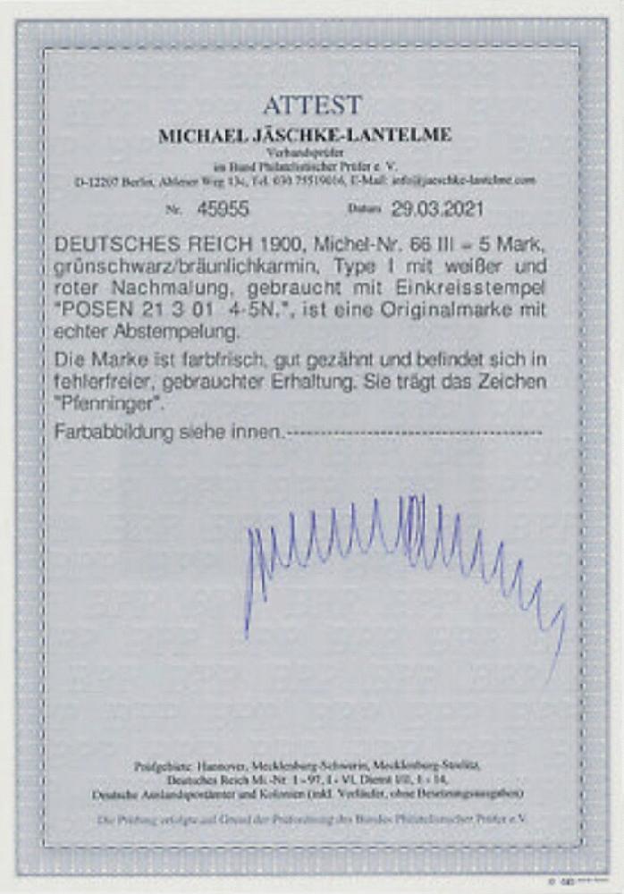 | Prüfgebiet: | Deutsches Reich 1871 - 1918 (Mi-Nr. 1 - 106) |