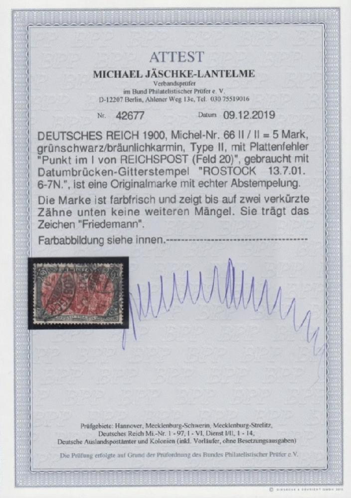 | Prüfgebiet: | Deutsches Reich 1871 - 1918 (Mi-Nr. 1 - 106) |